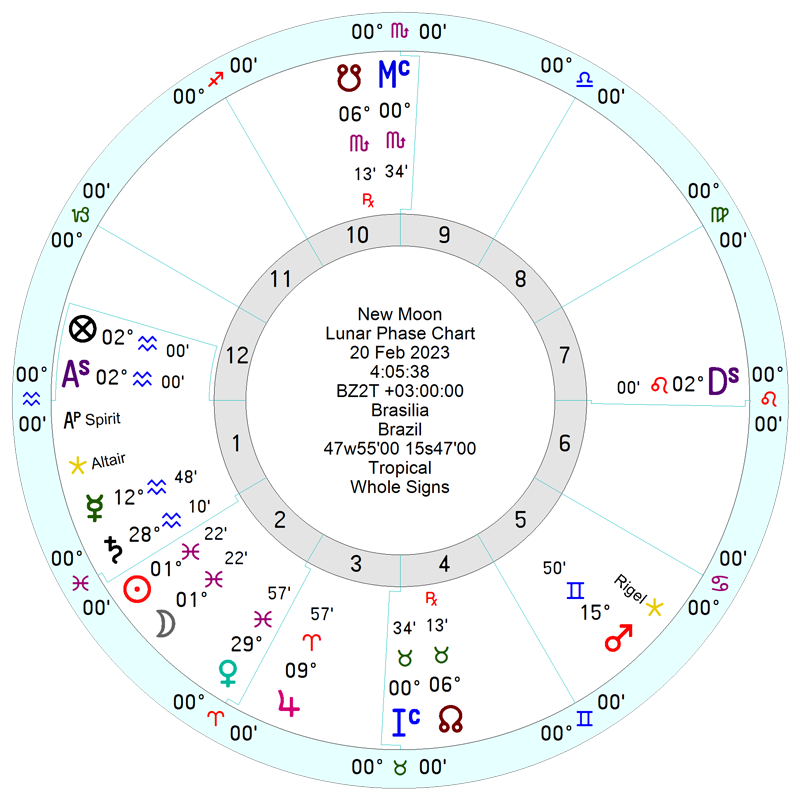 Além disso tudo, cabe lembrar que Saturno está nas últimas de Aquário e ingressa em Peixes já na semana que vem! Essa é a mudança de trânsito mais significativa no céu dentro dessa lunação. Saturno em Peixes, porém, é tema pra um pouquinho mais adiante. Por enquanto, vale pra gente viver o que nos resta dos graus finais de Aquário, um posicionamento extremamente marcante sobre tudo o que passamos nesses tempos. É difícil olhar para os últimos três anos e não perceber o tanto de Saturno em Aquário no que vivemos: a pandemia, as conspirações, as fake news, a inteligência artificial, as questões sobre exposição e privacidade, a viralização nas redes sociais, a defesa (e vitória) da democracia, o alcance da crise climática. Agora, vivemos dias finais desse trânsito, quando os significados desse planeta estarão especialmente enfatizados devido ao seu afastamento do Sol: ele volta a ficar visível no céu ao amanhecer por alguns dias — o que chamamos de nascer helíaco — antes de adentrar de vez sua fase diurna no céu, por vários meses. Quem tiver interesse de observar (e se despedir) de Saturno em Aquário com mais brilho e clareza no céu, seguem as dicas: consulte o horário do nascer do Sol na sua cidade; encontre um local com boa visibilidade do horizonte leste (sem montanhas, prédios, etc); esteja a postos cerca de 30 a 50 minutos antes do horário do Sol nascer. Aqui no Rio, por exemplo, nos próximo dias o Sol nascerá entre 05h51 e 05h54, então o intervalo é entre 05h e 05h25 (depois disso, o céu já está claro demais). Os melhores dias devem ser o 5 e 6 de março, mas a observação tá valendo desde já, até o dia 7.